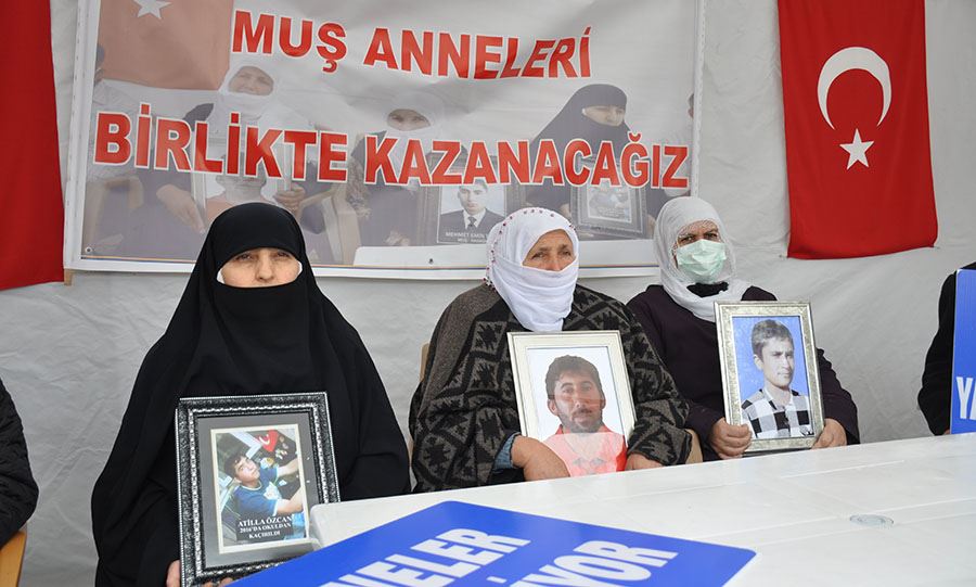Muş’ta HDP İl Başkanlığı önünde evlat nöbeti tutan 24 aile yıllardır görmedikleri çocuklarının ve kardeşlerinin güvenlik güçlerine teslim olmaları için çağrıda bulunmaya devam ediyorlar.