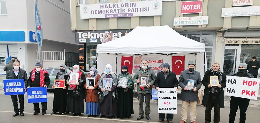 Her hafta Çarşamba günü çocuklarının kaçırılmasından sorumlu tutukları Hakların Demokratik Partisi (HDP) Muş İl Başkanlığı önünde bir araya gelen aileler dondurucu soğuğa rağmen çocuklarına kavuşana kadar nöbetlerine devam edeceklerini söylediler.