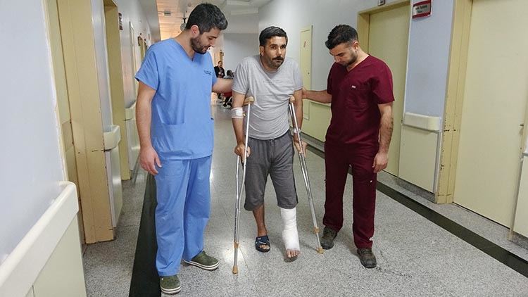 Muş’un Hasköy ilçesinde tarlada çalışırken biçerdövere bir ayağını kaptıran Nurettin Subaşı, Van Eğitim ve Araştırma Hastanesindeki doktorların başarılı müdahalesiyle 6 ay sonra ilk adımını atmaya başladı.