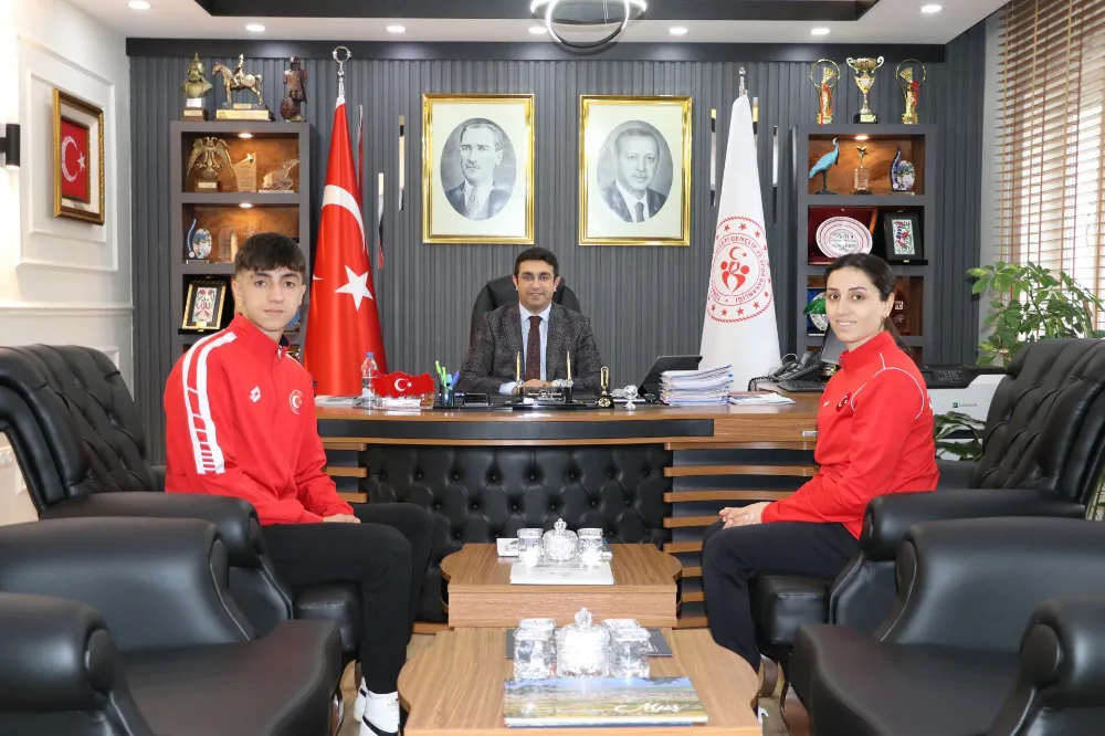 Müdür Taşdemir, ziyarette yapmış olduğu konuşmasında ayrıca şunları dile getirdi: “İlimizde sporun ve sporcunun gelişmesi için elimizden gelen gayreti gösteriyoruz. Müdürlüğümüz bünyesinde onlarca spor branşında ileride çok başarılı olacaklarına inandığımız çok sayıda yetenekli genç sporcularımız bulunuyor. Sporcularımız, gelişimlerini devam ettirmeleri için müdürlüğümüz bünyesinde uzman antrenörlerimizle çalışmalarına devam ediyorlar. Bizde yine sporcularımızın ileride başarılı olmaları için elimizden geldiğince destek veriyoruz ve vermeye devam edeceğiz. İlimizde sporun ve sporcunun gelişmesi için öncelikle Gençlik ve spor Bakanlığımızın sağlamış olduğu imkanlardan dolayı Sayın Bakanımız Osman Aşkın Bak’a teşekkür ediyorum. Öte yandan ilimiz spora ve sporcuya önem veren bir valiye sahip olduğu için ayrıca şanslı bir il konumundadır. Sayın valimiz Avni Çakır’a da sporcularımıza sağlamış oldukları desteklerden dolayı kendi adıma ve sporcularımız adına teşekkür ediyorum. Bugün Serhat Berat Ferhatoğlu ilimizi Milli Takımda temsil ederek ülkemiz adına yarışacak. Kendisine ve antrenörü Aydan Ferhatoğlu’na katılacakları şampiyonada başarı diliyorum. İlerleyen yıllarda ilimizden Milli Takımlarda Muş’umuzu ve ülkemizi başarı ile temsil edecek sporcuların yetişeceğine eminim.” Dedi.
