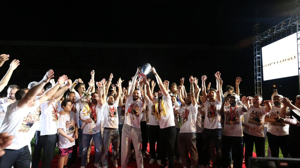 Kutlamalar kapsamında, Muşspor’un futbolcuları ve teknik heyeti tek tek sahneye çağrılarak coşkulu alkışlarla karşılandı. Ardından takım kaptanı ve oyuncular, şampiyonluk kupasını tribünleri dolduran taraftarların tezahüratları eşliğinde havaya kaldırdı. Tören sırasında stadyumda meşaleler yakıldı, marşlar söylendi ve sarı-siyah bayraklar dalgalandı.