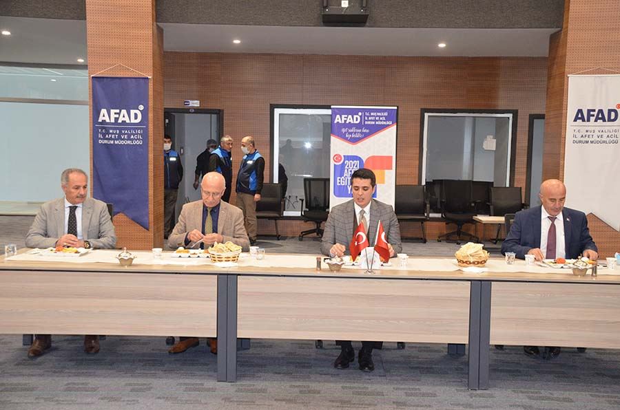Düzenlenen toplantıda bir konuşma yapan Vali Yarımcısı Muhammet Fatih Demirel, Muş’ta 300 bin kişiye afet eğitimi hedefi belirlendiğin belirterek: “28 Şubat Sivil Savunma Günü olarak kutlanmaktaydı. Yine içinde bulunduğumuz hafta da deprem haftası olarak kutlanmaktadır. Ülkemizin dört bir tarafından 81 vilayetinde olduğu gibi ilimizde de bu hafta münasebetiyle eğitim çalışmaları yapılmaktadır. Yine diğer taraftan 2021 yılı sayın bakanımızın talimatlarıyla Afet Eğitim yılı ilan edildi. Ülke genelinde eğitim seferberliği başlatıldı. Bu doğrultuda sayın valimizin de talimatlarıyla bu anlamda planlamalarımızı yapmaktayız. 300 bin gibi bir hedef gösterildi ilimize AFAD Müdürlüğümüz gerekli organizasyonları yaparak inşallah bu hedefe ulaşmak için çalışıyorlar. Bu süreçte eğitimlerin yanında yazılı ve görsel basının katkıları oldukça önem arz etmektedir. Bu anlamda basın kuruluşlarımızın da desteğini beklemekteyiz. Bu vesile ile de ülkenin dört bir tarafında da olduğu gibi ilimizde de basın mensuplarını davet ederek kahvaltılı bir organizasyon düzenlendi. Katılımlarınızdan dolayı hepinize teşekkür ediyorum.” Dedi.