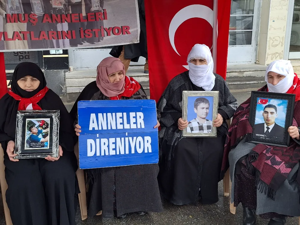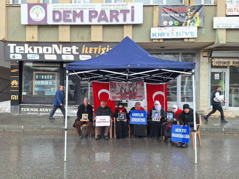 Muş’ta çocuklarının terör örgütü PKK tarafından dağa götürüldüğünü iddia eden aileler, dondurucu soğuğa rağmen DEM Parti İl Başkanlığı binası önünde sürdürdükleri evlat nöbetinde, barış sürecine dikkat çekerek çocuklarına teslim olma çağrısını yineledi.