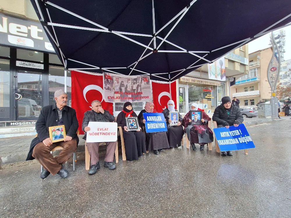 Her hafta Çarşamba günü bir araya gelen aileler, soğuk hava koşullarına rağmen çocuklarına kavuşma umudunu diri tutarak nöbetlerini sürdürdü. Nöbete katılan aileler, çocuklarının fotoğraflarını ve “Artık yeter”, “Anneler direniyor”, “Yakamızdan düşün” ifadelerinin yer aldığı pankartları taşıdı. Aileler, örgütte bulunan evlatlarına güvenlik güçlerine teslim olmaları yönünde çağrıda bulundu. Anneler ve babalar, yıllardır süren hasretin artık sona ermesini istediklerini dile getirdi.