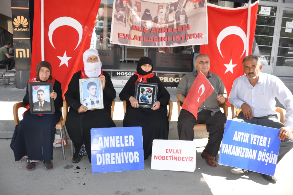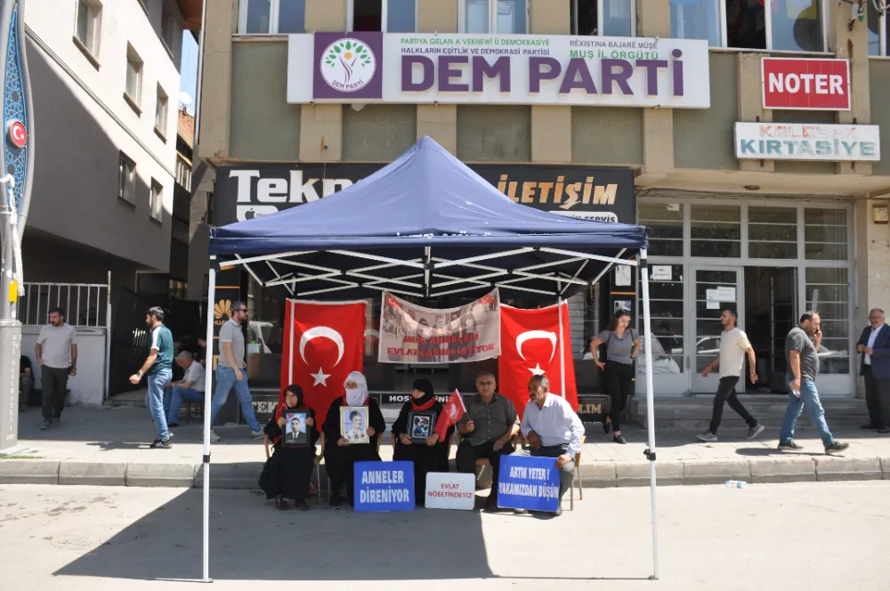 Muş'ta çocukları terör örgütü PKK tarafından kaçırılan aileler, DEM Parti İl Başkanlığı binası önünde eylemlerine devam etti.