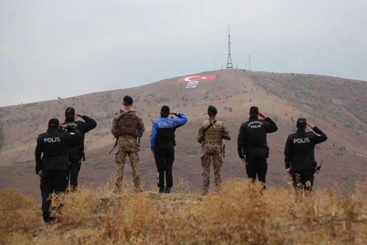Oluşturdukları Türk bayrağını 10 Kasım Atatürk'ü Anma ve Atatürk Haftası'na yetiştiren polisler, saat 09:05'te 1500 metrekarelik bayrak ve Atatürk posterinin önünde saygı duruşunda bulundu. AA