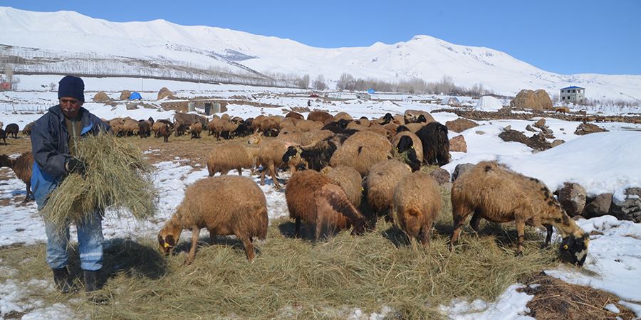 Köylülerden Hüseyin Tekgül ise küçükbaşların kış boyunca kar üstünde yemlendiğini belirterek, "Çok zor şartlar altında hayvancılık yapıyoruz. Yaklaşık 500 metre mesafeden otları at ve kızaklarla taşıyoruz." ifadelerini kullandı. İHA