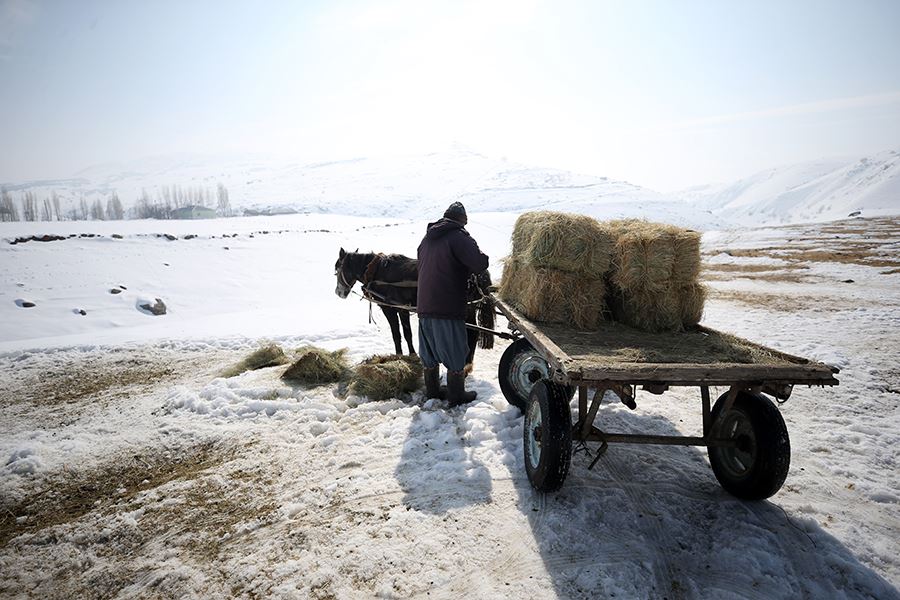 Kış mevsiminde yaklaşık 6 ay hayvanları kar üzerinde beslediklerini anlatan besicilerden Zübeyde Akkoyun, tek geçim kaynaklarının hayvancılık olduğunu söyledi. Hayvancılıktan başka bir iş yapmadıklarını ifade eden Akkoyun; “Sabah erkenden kalkıp hayvanlarımıza ot ve yem veriyoruz. Öğle vaktinde otları kızaklara yükleyip getiriyoruz. Saat 11.00-12.00 gibi hayvanları tekrar içeri koyuyoruz. Öğleden sonra tekrar yem verdikten sonra istirahate çekiliyoruz. Kışın burada yaşamak zor, kış çetin geçtiği için. Hele bu yıl iklim şartları daha zor. Tabi başta geçim kaynağı olduğu için bu işimizi de zevkle yapıyoruz. Başka bir işimiz yok. Çocuklarımız burada değil, İstanbul’da çalışıyorlar. Biz de burada çalışıyoruz. Geçimimizi böyle sağlıyoruz. Hayvanlara kar üzerinde ot ve saman veriyoruz” dedi.