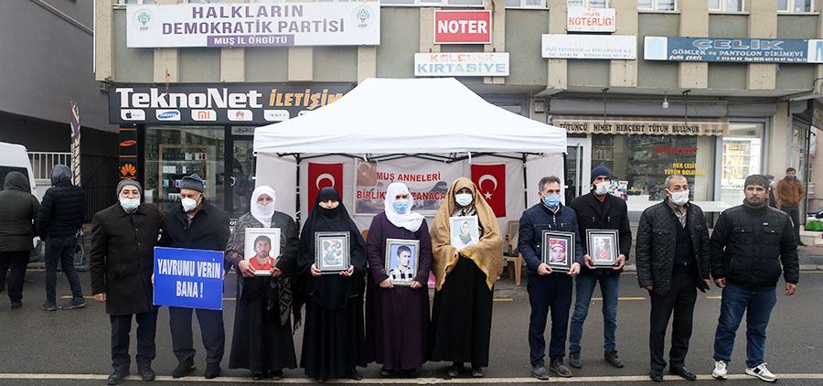 Çocuklarının dağa kaçırılmasından HDP'yi sorumlu tutan Diyarbakır annelerinin 3 Eylül 2019'da başlattığı evlat nöbetinin ardından Muşlu aileler de 7 Nisan'dan bu yana yaptıkları eylemlerini kararlılıkla sürdürüyor.