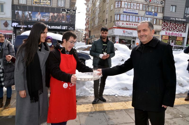 MUŞ'TA DOWN SENDROMLU ÇOCUKLAR VATANDAŞLARA KAHVE İKRAM ETTİ