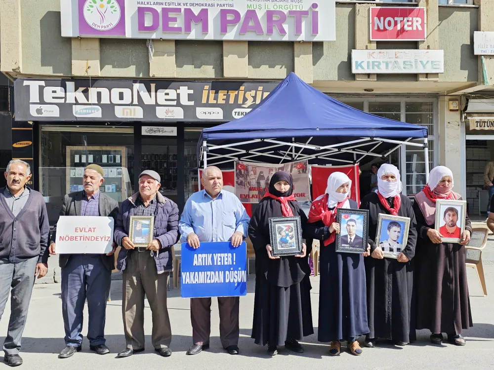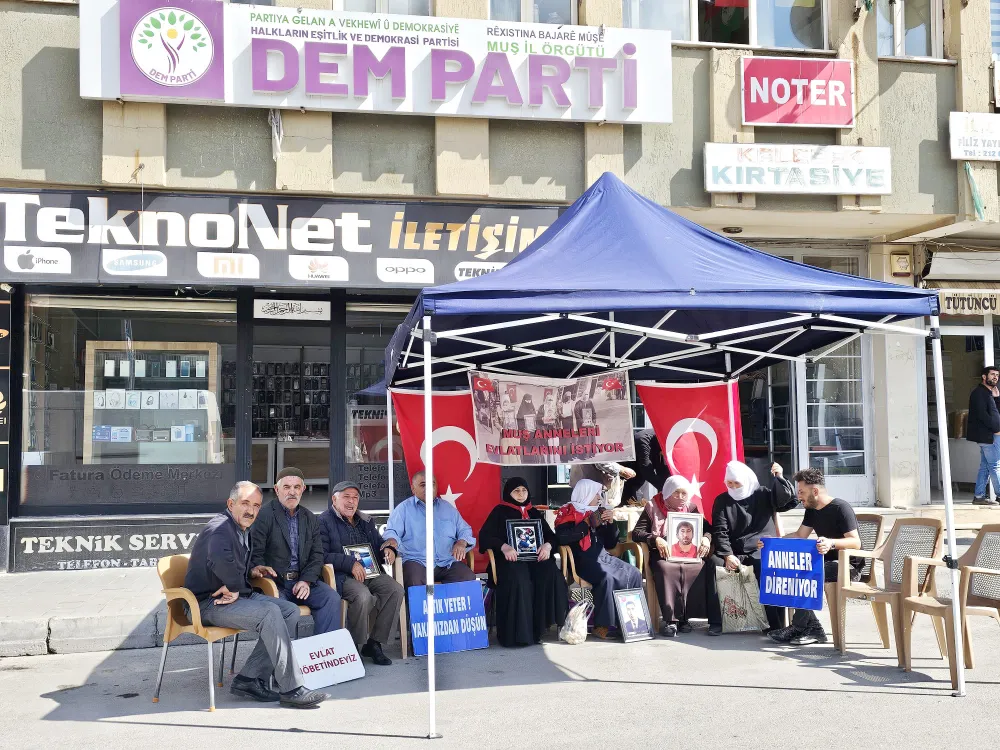 Muş’ta çocukları terör örgütü PKK tarafından alıkonulan aileler, her hafta çarşamba günü DEM Parti İl Başkanlığı önünde bir araya gelerek evlatlarına kavuşma umuduyla eylemlerini sürdürüyor.