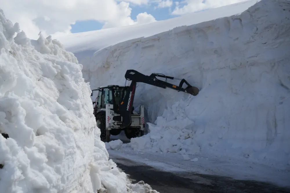 Muş İl Özel İdaresi ekipleri, kış mevsimi boyunca etkili olan yoğun kar yağışı ve fırtına sonrası kapanan alternatif köy yollarında ulaşımın sağlanması için çalışmalarını sürdürüyor. Özellikle 2 bin 500 rakımlı Derecik-Ilıca-Ağıllı grup köy yolunda zorlu bir mücadele veren ekipler, kar kalınlığının yer yer 5 ila 6 metreyi bulduğu bölgede yol açma çalışması yürütüyor. Çığ riskine rağmen büyük bir titizlikle çalışan ekipler, bazı noktalarda 100 metrelik yolu ancak 4 saatte ulaşıma açabiliyor.