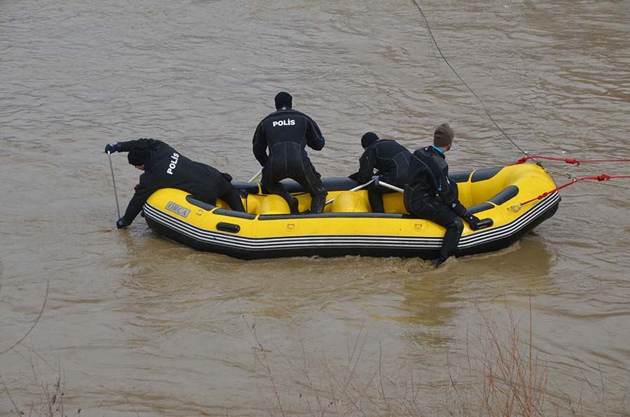 Dalgıçlar, Özkan'ın düştüğü değerlendirilen noktanın 2 kilometre uzaklığındaki Karasu Nehri'nde suyun artması nedeniyle halat bağladıkları rafting botuyla arama çalışması yaptı.