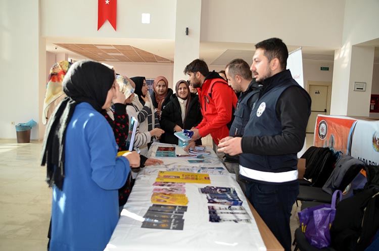 Emniyet Müdürlüğünden yapılan açıklamada, proje kapsamında TEM, TDP, Güvenlik, Asayiş, Narkotik ve Siber Suçlarla Mücadele Şubelerince öğrencilerin bilgilendirilmesi amacıyla Muş Alparslan Üniversitesi'nde stant açtığı belirtildi.