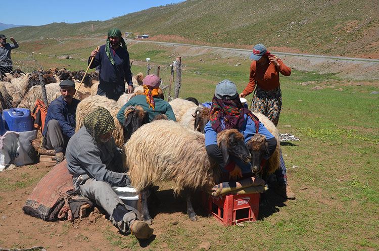 Bir aylık zorlu göç yolculuğunun ardından Şenyayla ve Kozma Dağı yaylalarında konaklayan göçerler, otlattıkları hayvanların sağımını yaptı.