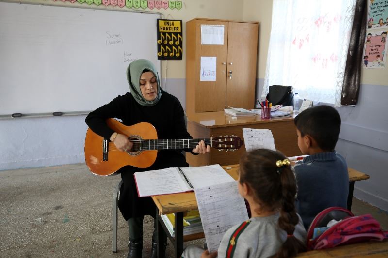 Çocuklara kendi evlatları gibi bağlandıklarını anlatan Kaplan, "Burası mesleki anlamda bize çok şey kattı. Öğrencilerim için gitar eğitimi aldım. Çocukların birçok imkanı yok ve ekranlardan gördükleri kadarıyla öğreniyorlar. Burada bir enstrümanı gördüklerinde ve şarkılar söylediğimizde onlar için daha etkileyici oluyor. Bu şekilde çocukların şarkı repertuvarı gelişiyor, özgüvenleri artıyor. Dersleri bu sayede daha eğlenceli hale getiriyoruz." ifadelerini kullandı.