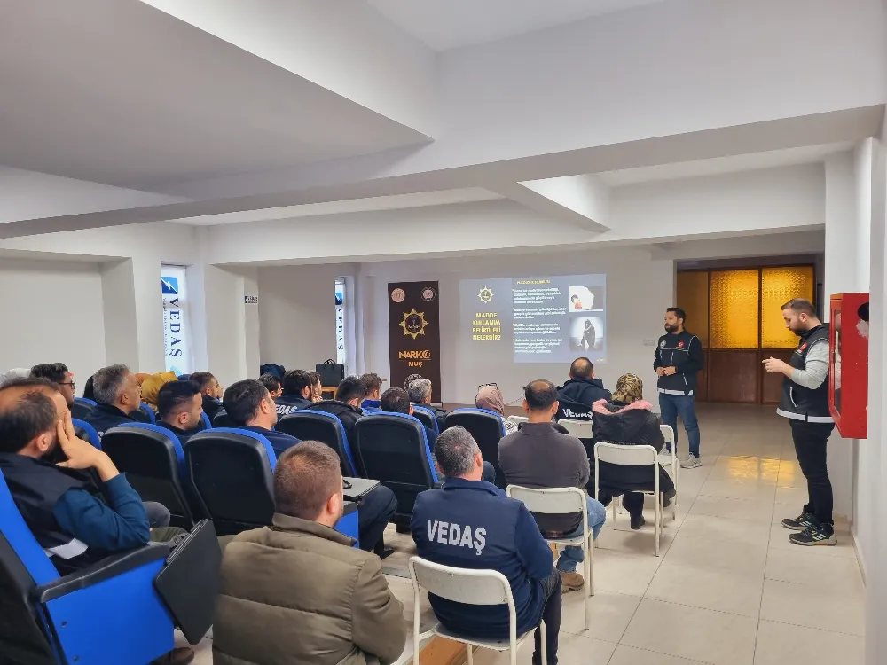 Muş Emniyet Müdürlüğü, VEDAŞ çalışanlarına uyuşturucuyla mücadele ve farkındalık eğitimi verdi.