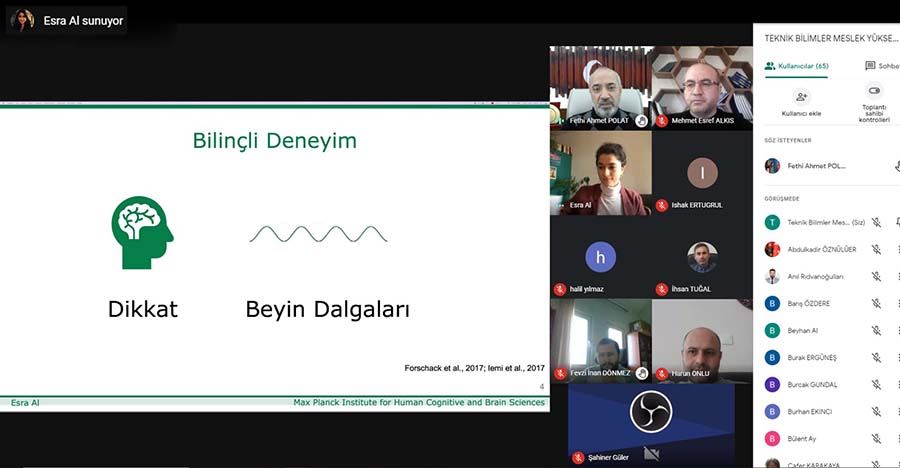 Almanya’da Psikofizyoloji ve Uygulamaları Derneği tarafından her yıl verilen Genç Bilim İnsanı Ödülü’nün 2020 yılı sahibi Esra Al, Muş Alparslan Üniversitesi (MŞÜ) Teknik Bilimler Meslek Yüksekokulu (TBMYO) bünyesinde düzenlenen çevrimiçi seminerde akademik personel ve öğrenciler ile bir araya geldi.