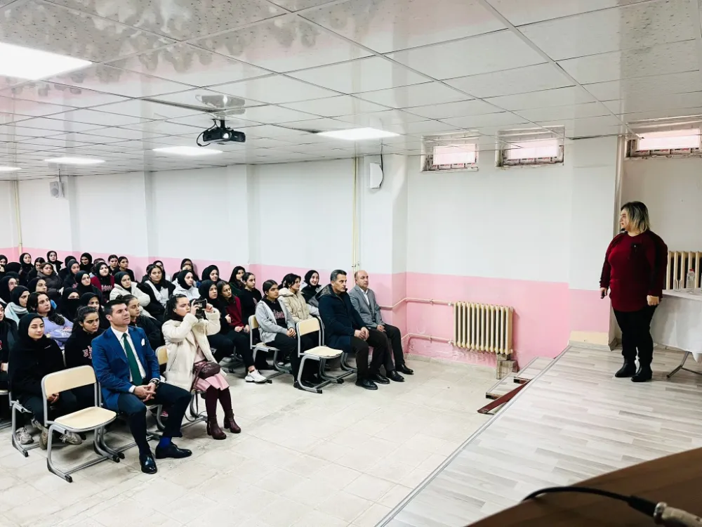 Muş İlci İnşaat Kız Anadolu İmam Hatip Lisesi’nde düzenlenen seminerde, Doç. Dr. Zeynep Kantarcı Bingöl tarafından öğretmen ve öğrencilere bağımlılığın nedenleri, riskleri ve korunma yolları anlatılarak, bireysel ve toplumsal mücadelede farkındalık oluşturulması hedeflendi.