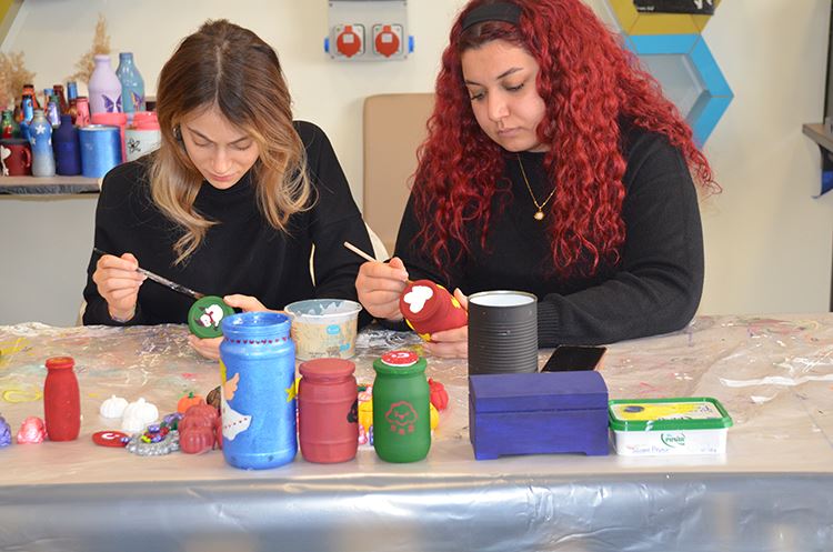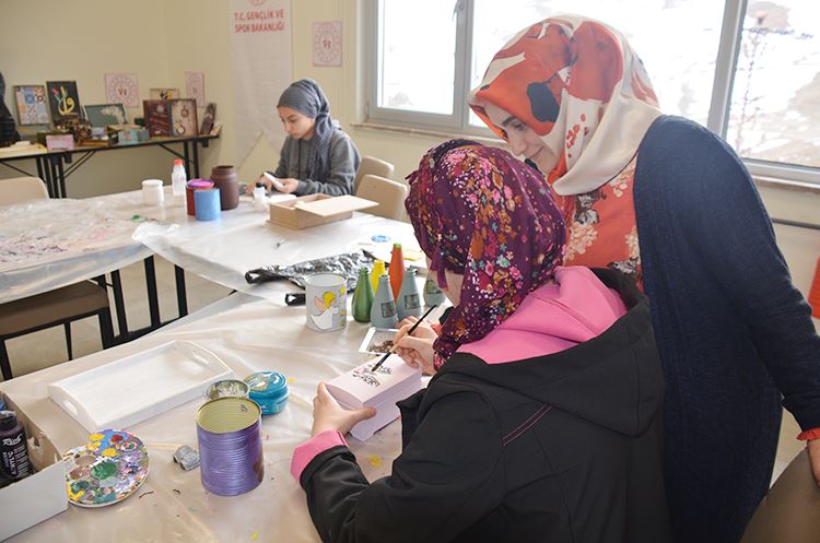 Öğrencilere sanat öğrettiklerini ifade eden usta öğretici Gönül Özdemir, soda şişeleri ve konserve kutularını geri dönüştürerek yararlı bir şekilde kullanmaya çalıştıklarını ifade ederek, “Sultan Alparslan kız yurdunda açılan ahşap boyama ve geri dönüşüm kursunda öğrencilerimize geri dönüşüm odaklı çalışmalar yapıyoruz. Gençlik ve Spor İl Müdürlüğü öğrencilerimizin ihtiyacı olan malzemeleri bize temin ederek öğrencilerimiz için karşılıyor. Bizde kızlarımızın burada akşamlarını boş geçirmemesi için onlara sanat öğretmeye çalışıyoruz. Boya malzemeleri, atık kutular, soda şişeleri ve konserve kutularını geri dönüştürerek yararlı bir şekilde kullanmaya çalışıyoruz. Burada ürettiğimiz ürünleri yılsonunda açacağımız sergide sergileyeceğiz” şeklinde konuştu.