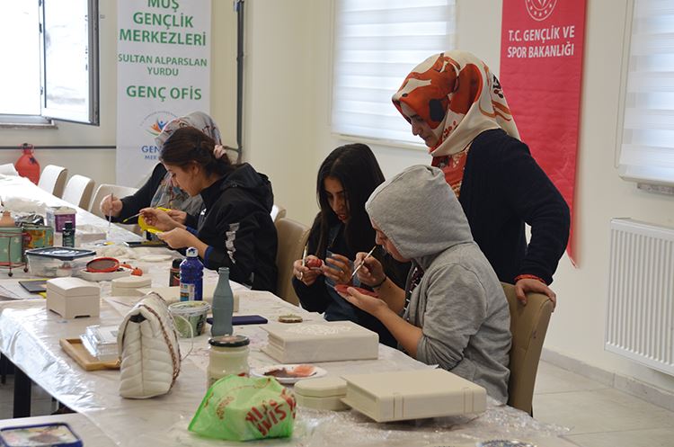 Muş Gençlik ve Spor İl Müdürlüğü, genç ofis tarafından öğrencilerin kişisel gelişimlerine katkı vermek, el sanatları ile meslek edindirmek amacıyla öğrenci yurtlarında çok sayıda kurs açılıyor. Açılan geri dönüşüm ve ahşap boyama, Osmanlıca, İngilizce, müzik, resim, Kur’an kurslarına öğrenciler tarafından yoğun ilgi gösteriliyor. Bugüne kadar bin 500 öğrencinin faydalandığı kurslar sayesinde yurtlarda barınan öğrenciler serbest zamanlarını kaliteli şekilde geçirebiliyor.