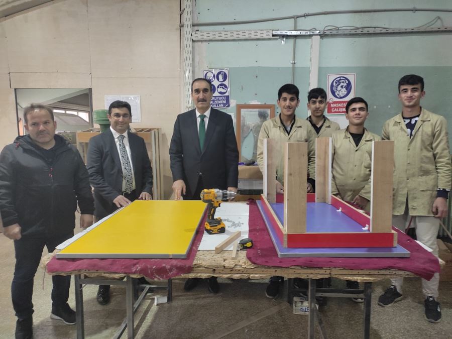 Muş Mesleki ve Teknik Anadolu Lisesinde üretilen tenis masalarını inceleyen Muş Gençlik ve Spor İl Müdürü Mehmet Arif Taşdemir ve İl Milli Eğitim Müdürü Enver Kıvanç, bitirilen pota ve tenis masalarını yakın zamanda öğrencilere ulaştıracaklarını söylediler.