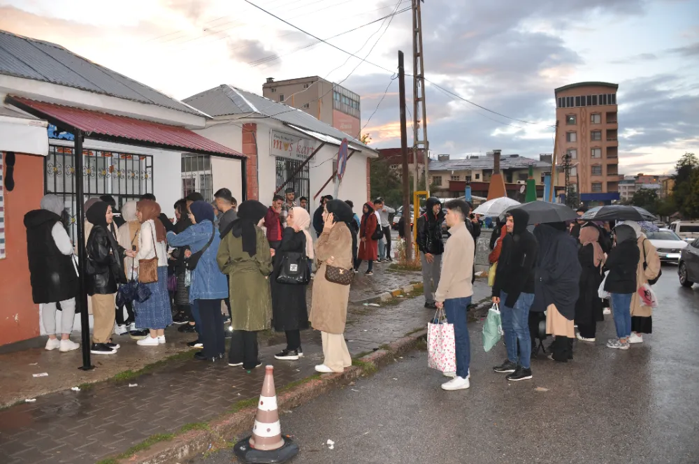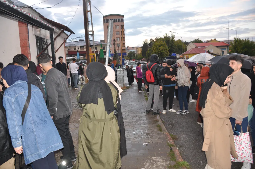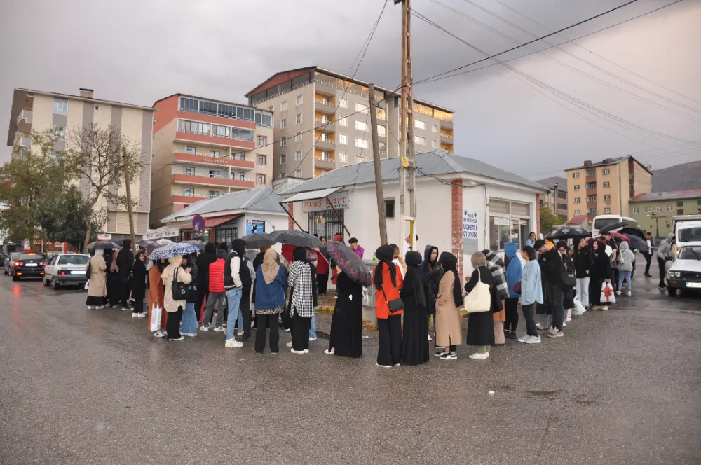 Muş’a gelen üniversite öğrencileri, halk otobüslerinde kullanmak üzere Alparslan Kart almak için kart dolum merkezinin önüne akın etti. Saatlerce kuyrukta beklemek zorunda kalan öğrenciler, yağmurun altında beklediklerini ve yetkililerin bu soruna çözüm bulmasını istediler