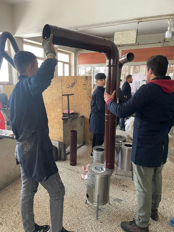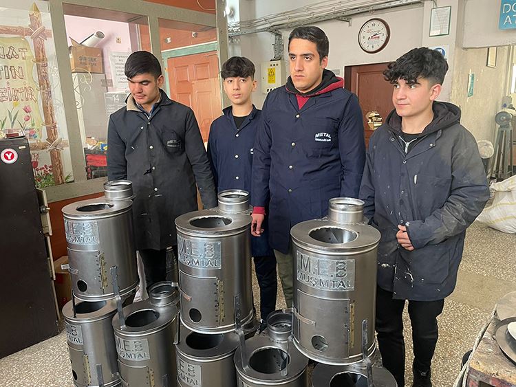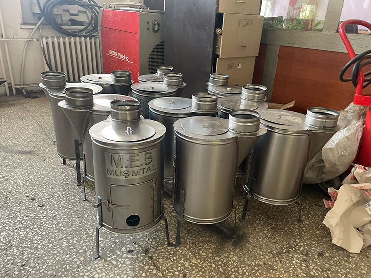 Muş Milli Eğitim Müdürlüğüne bağlı Muş Mesleki ve Teknik Anadolu Lisesi öğretmen ve öğrencileri deprem bölgesindeki afetzedeler için çadır dışı soba üreterek bölgeye gönderdi.