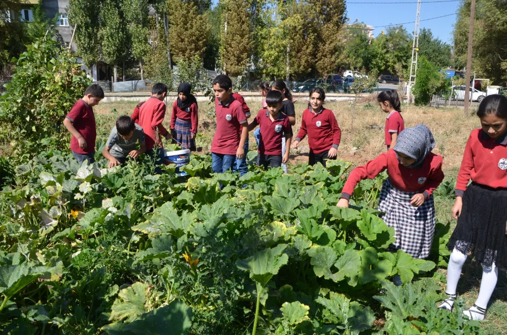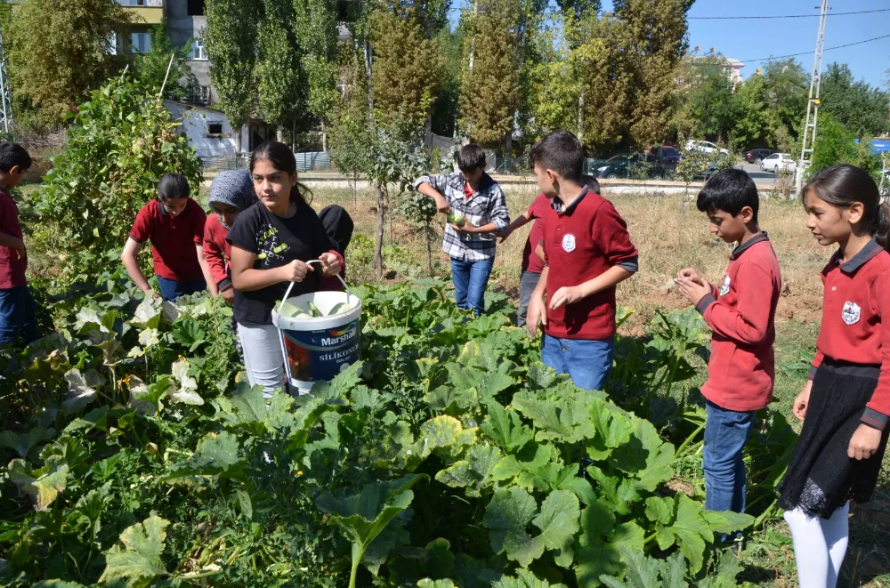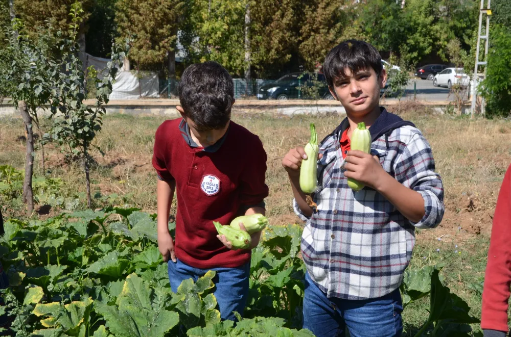 Öğrencilerle birlikte Mayıs ayında okulun atıl durumdaki 500 metrekare alanında sebze ektiklerini hatırlatan Şimşek, şunları kaydetti: “Burada fasulye, biber salatalık, kabak ve patlıcan ektik. Bunların bakımını öğrencilerimizle birlikte yaptık. Şu anda hasadına başladık. Elde ettiğimiz ürünleri çevremizde yaşayan ihtiyaç sahiplerine dağıtıyoruz. Bizim amacımız çocuklarımızın hayvanları sevebilmesi, tarımı öğrenebilmesi, eğitimle birlikte bunları yapılıyor olmasıdır.”