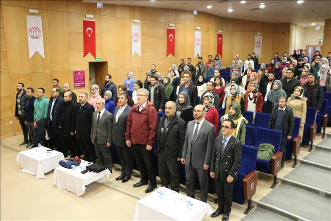 Sabahattin Zaim Konferans Salonu´nda ?Genç Beyinler Sağlık Topluluğu? Danışmanı Dr. Öğr. Üyesi Fuat Korkmazer´in moderatörlüğünde gerçekleştirilen ve konuşmacı olarak Muş İl Müftüsü Alettin Bozkurt ile Muş Organ ve Doku Nakli İl Koordinatörü Faysal Şeker´in yer aldığı panele Sağlık Bilimleri Fakültesi Dekanı Prof. Dr. Hüseyin Kırımoğlu´nun yanı sıra akademisyenler ve öğrenciler katılım gösterdi.