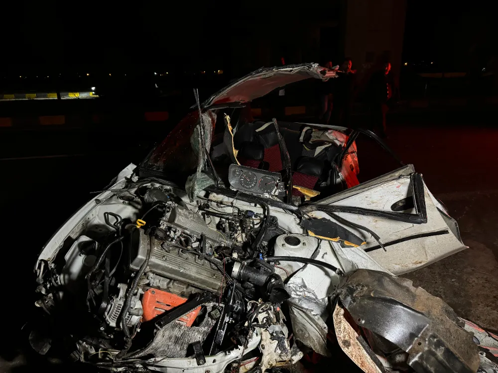 Sürücünün direksiyon hakimiyetini kaybetmesi sonucu refüj, ağaç ve aydınlatma direğine çarpan otomobilde bulunan 2 kişi yaralandı