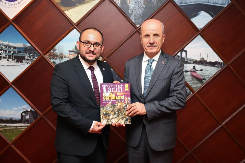 Ziyaretin sonunda Rektör Prof. Dr. Mustafa Alican, danışmanlığını yürüttüğü Derin Tarih Dergisi Haçlılar Özel Sayısı’nı Prof. Dr. Erol Özvar’a takdim etti. Alican, YÖK Başkanı Özvar’a üniversiteye gösterdiği ilgi ve desteklerinden dolayı teşekkür etti.