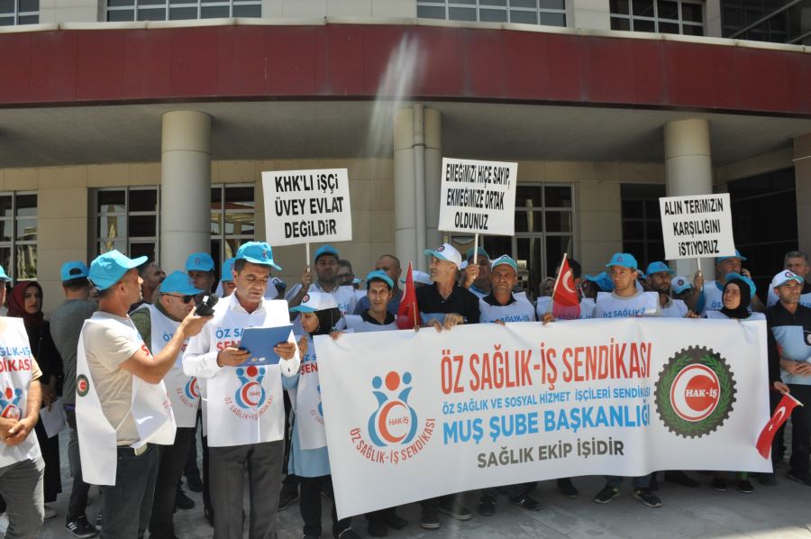Öz Sağlık İş Sendikası Muş Şube Başkanlığı, sağlık çalışanlarının geriye dönük alacaklarını ödenmesi için basın açıklaması yaptı.