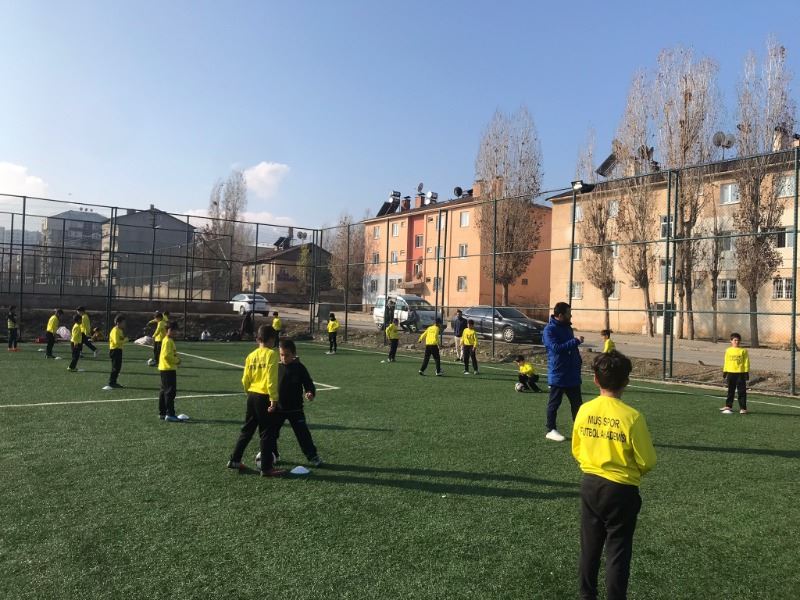Muşspor Futbol okullarına giden yüzlerce 6-12 yaş aralığındaki çocuklar havaların soğumasına aldırış etmeden eğitimlerini aksatmıyor.