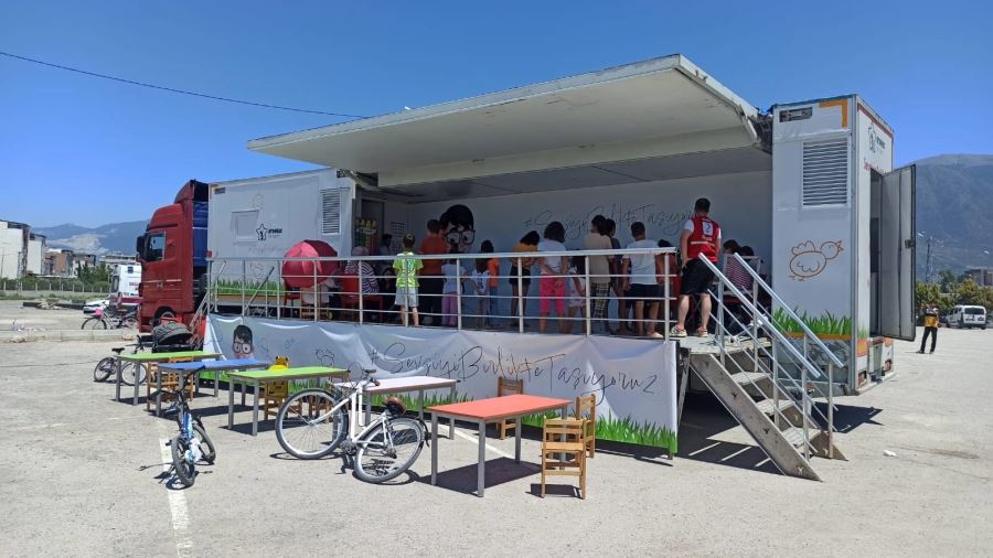 'Sevgiyi birlikte taşıyoruz' mottosuyla Muş Valiliği, Muş Belediyesi, Muş Alparslan Üniversitesi, Muş Kızılay Şubesi tarafından oluşturulan tırda, çadır ve konteyner kentlerdeki 7-13 yaş aralığındaki çocuklar göz taramasından geçiriliyor. Sevgi ve Sağlık Tırı Proje Koordinatörü Aykut Çağlı, salgın döneminde olduğu gibi deprem sonrası da strese dayalı göz sorunlarının yaşandığını söyledi.