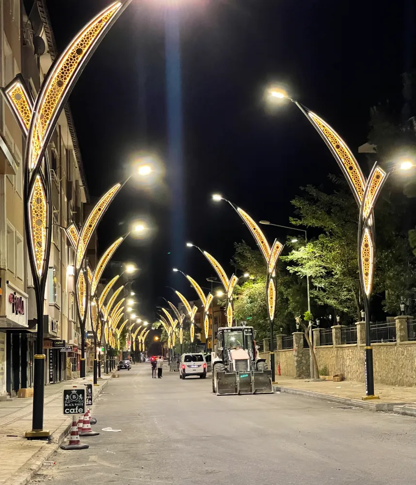 Belediye ekipleri, üst yapı çalışmaları kapsamında birçok sokağa dekoratif aydınlatma direkleri dikti. Işıl ışıl olan sokaklar adeta göz kamaştırıyor