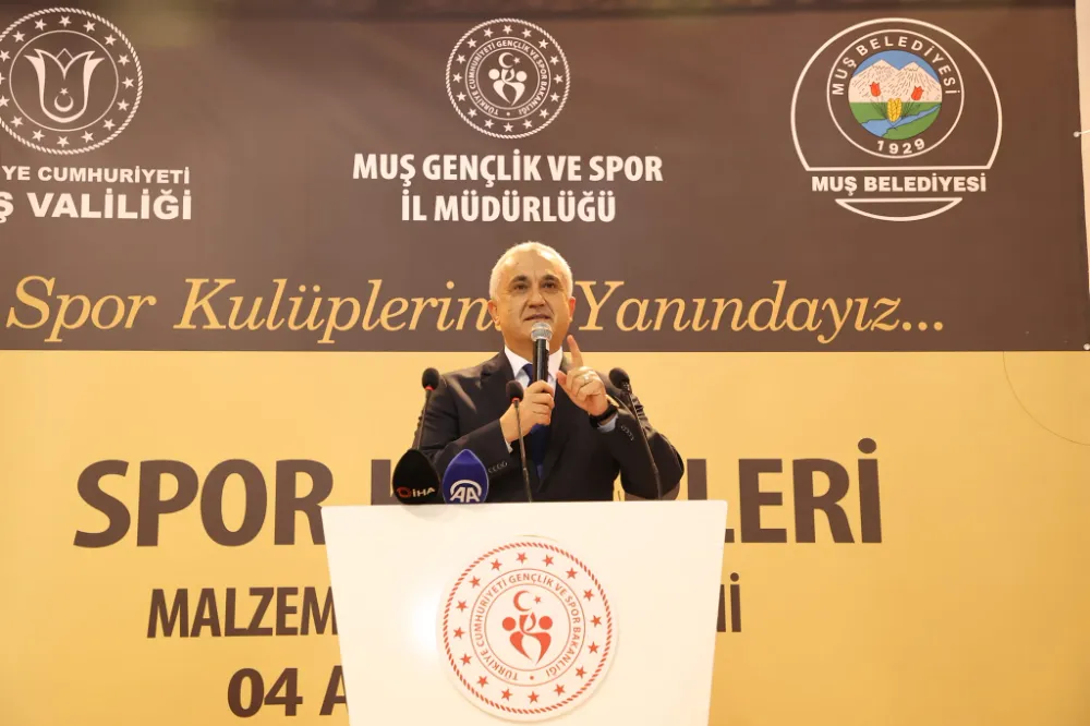 Gençlik ve Spor İl Müdürü Mehmet Arif Taşdemir ise, 20 tane spor kulübüne forma, yağmurluk, eşofman ve top dağıtacaklarını söyledi. Geçtiğimiz Mayıs ayında da Gençlik ve Spor Bakanlığının desteğiyle 77 spor kulübüne 1 Milyon 650 bin TL değerinde nakdi yardım ve 1 buçuk milyon TL değerinde de ayni yardımda bulunduklarını hatırlatan Taşdemir sözlerini şöyle sürdürdü, “Bugün de Sayın Valimiz ve Belediye Başkanımızın desteğiyle burada 20 spor kulübümüze malzemelerini dağıtacağız. Amacımız Muş ilimizde, ilçelerinde ve 17 beldesinde amatör spor kulüpleri marifetiyle futbol, basketbol, badminton, voleybol, güreş karate gibi değişik branşlarda gençlerimizi yetiştirerek uluslararası turnuvalarda ülkemizin bayrağını göndere çekmektir. Bu konuda meyvelerini de almaya başladık. Bakanlığımıza bağlı tesislerimiz ilçelerimizde faaliyetlerine başladılar. İnşallah lisanslı sporcu sayımızı da arttırmak suretiyle gençlerimizi zararlı alışkanlıklardan uzak tutarak gençlerimizi sporla, sanatla, kültürle gençlerimizi hemhal etmek istiyoruz. Destek veren başta Sayın Valimize, Belediye Başkanımıza şükranlarımızı arz ediyoruz. Dağıtılan malzemelerin de Muş sporuna Muş gençliğine hayırlı olmasını diliyorum. Gençlerimizin spor yamamaları için bir mazeretleri kalmadı. Şu anda 5 ilçemizde ve 17 beldemizde spor tesislerimiz var ve buralardaki gençlerimizi spor yapmaya davet ediyoruz."