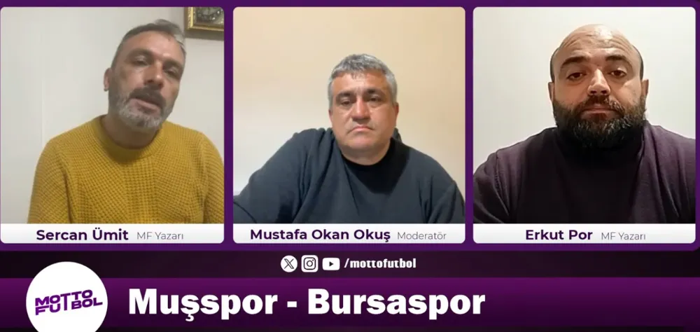 Motto Futbol kanalında Mustafa Okan Okuş’un moderatörlüğünde düzenlenen programda Sercan Ümit ve spor yorumcusu Erkut Por, haftanın en kritik karşılaşmalarından biri olarak gösterilen Muşspor–Bursaspor mücadelesini detaylı şekilde yorumladı. 53 puanlı Muşspor, lider 60 puanlı Bursaspor’u evinde ağırlamaya hazırlanıyor. Ev sahibi ekip, sahadan galibiyetle ayrılarak puan farkını azaltmayı hedeflerken, Bursaspor zirvedeki yerini korumak için deplasmanda puan arayacak.