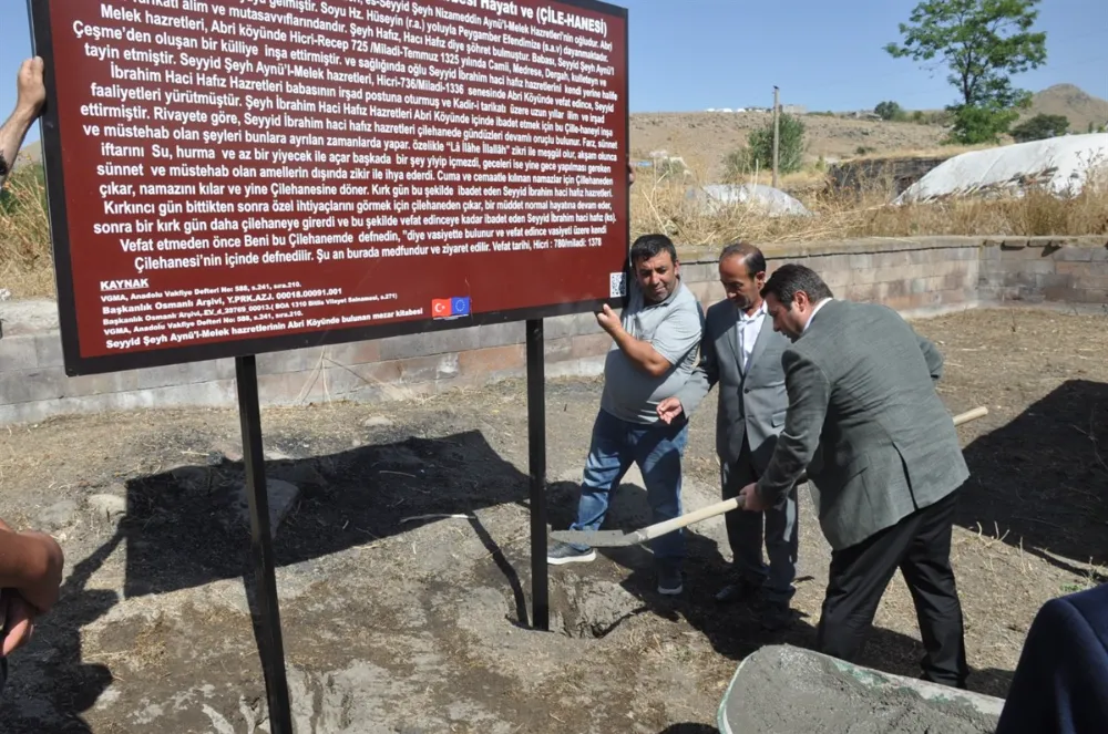 Köydeki çilehane ‘mezar odası’ olarak bilinen alanı gezen Kaymakam Ocak, mezar odasına inişi sağlayan kısa yoldan geçerek incelemelerde bulunup dua etti.