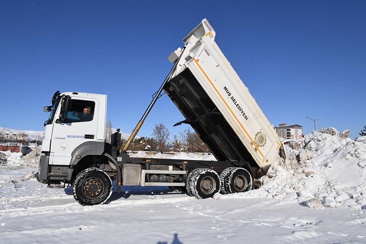 Kar yağışının etkisini yitirmesinin ardından Muş Belediyesi ekipleri tarafından şehrin belli noktalarından toplanan tonlarca kar kamyonlarla şehir dışına taşınıyor. Kar yağışının etkili olduğu günden itibaren gece gündüz demeden çalışmalarını sıklaştıran Muş Belediyesi karla mücadele ekipleri şehir merkezinde cadde, sokak ve kaldırımlardaki karları temizleyerek vatandaşların ulaşımda sıkıntı yaşamamalarını sağladı. Yapılan çalışmalar ile belirli noktalarda iş makineleri ile biriktirilen tonlarca kar kar yağışının etkisini yitirmesi ile il dışına taşınmaya başladı. Her gün yüzlerce ton karı kamyonlarla şehir dışına çıkaran ekipler mesai meftunu demeden çalışmalarını sürdürüyor.