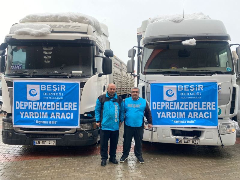 Muş’ta Kahramanmaraş’ta yaşanan ve 10 ilde yıkıma neden olan depremlerin ardından yardım kampanyası başlatan Beşir Derneği Muş İl Temsilcisi, toplamış olduğu 3 tır yaşam malzemesini deprem bölgesine ulaştırdı. Dernek üyeleri tarafından yardım kampanyasında toplanan battaniye, mont, bot, gıda, ısıtıcı, çocuk bezi, mama, çocuk kıyafeti gibi acil ürünler depremzedelere ulaştırıldı.