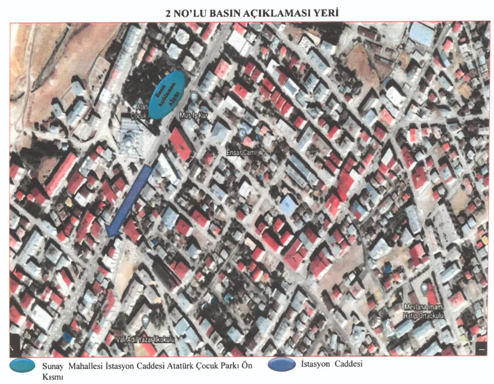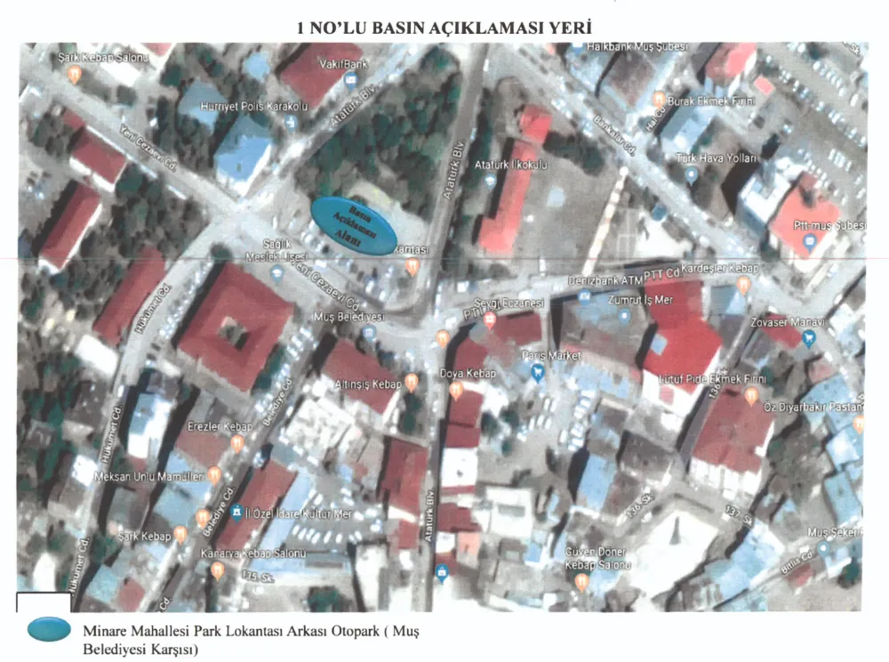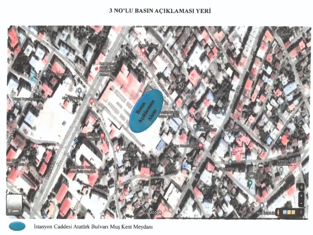 Açıklamada toplantı ve gösteri yürüyüşlerinin yasaklandığı yer ve bölgeleri içinde ise şu ifadelere yer verildi; “Bu bağlamda ilimiz polis sorumluluk alanında kamu hizmetlerinin aksamaması, kamu düzeni ile genel asayişin bozulmaması ve vatandaşların günlük yaşamının olumsuz etkilenmemesi için; Valilik Hizmet Binası önü ve çevresinde, Adliye Sarayı iç kısımları, önü, çevresi, otoparkı ve eklentilerinde, askeri bina ve tesislerin önü, çevresi ve eklentilerinde, İl Emniyet Müdürlüğü önünde, çevresinde, ek hizmet binaları önünde ve tüm eklentilerine, sağlık hizmeti verilen bütün birim /kurumların önü, otoparkı ve eklentilerinde (hastane, toplum sağlığı merkezleri, özel hastaneler vb.), kamu hizmeti görülen kurum ve kuruluşlarının önünde, otoparklarında ve eklentilerinde, eğitim-öğretim faaliyetleri yürütülen kurum ve kuruluşların önünde (ilk ve orta dereceli okullar, üniversite binaları, etüt merkezleri vb.) ek hizmet binalarında ve eklentilerinde, din faaliyetleri yürütülen kurum ve kuruluşların önünde, ek hizmet binalarında ve eklentilerinde (cami, mescit, Kur'an kursu), anayol, bağlantı yolları ve kavşaklarda toplantı ve gösteri yürüyüşü ile basın açıklaması yapılmaması; Ayrıca mevzuat hükümleri çerçevesinde yetkili makamlara usulüne uygun müracaatta bulunulmak suretiyle 2024 yılı Toplantı ve Gösteri Yürüyüşü Güzergâh Planına esas teşkil uygun olacağı Valiliğimizce etmek üzere; Park Lokantası arkasında bulunan Belediye Meydanı (1000 m2), İstasyon Caddesi Atatürk Çocuk Parkı önündeki alanın (500 m2) ile İstasyon Caddesi Atatürk Bulvarı Muş Kent Meydanı (20.000 m2) basın açıklaması yapılacak yerler olarak belirlenmesinin genel güvenlik/trafik ve kamu düzeni açısından uygun görülmüştür. Temel hak ve özgürlüklerden olan, Anayasa ve yasalarla güvence altına alınan toplantı ve gösteri yürüyüşü düzenleme hakkının; özgür bir ortamda, Anayasa ve kanunlarla belirtilen esaslar çerçevesinde kullanılması için belirlenen yerler haricinde yapılacak toplantı gösteri ve yürüyüş ile basın açıklamalarına kesinlikle izin verilmeyeceği hususunda; saygıyla duyurulur.”