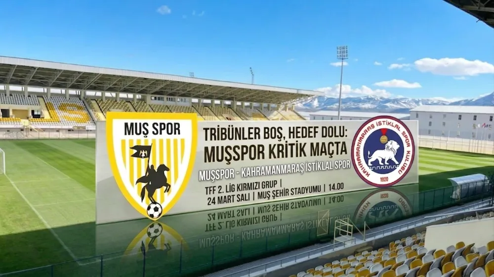 Muşspor, TFF 2. Lig Kırmızı Grup’ta playoff umutlarını canlı tutmak için Kahramanmaraş İstiklal Spor karşısında sahaya çıkıyor. Taraftar desteğinden yoksun oynanacak kritik maç, sarı-beyazlılar için sezonun dönüm noktası olacak.
