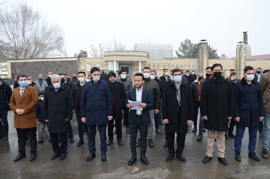 Belediye meydanında Muş TÜGVA il temsilciliği tarafından organize edilen ve STK temsilcilerinin de katıldığı basın açıklamasında Boğaziçi Üniversitesinde bir öğrenci topluluğu tarafından düzenlenen sergide Kabe fotoğrafının yere serilmesine tepki gösterildi.