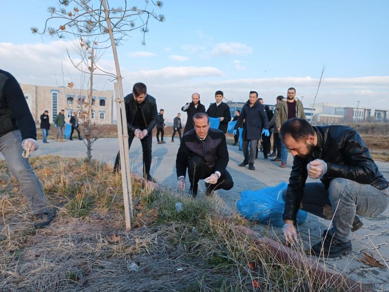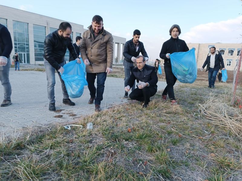 Muş Alparslan Üniversitesi (MAUN) Uygulamalı Bilimler Fakültesi (UBF) öğrenci ve akademik personelleri farkındalık etkinliği kapsamında çevre temizliği yaptılar.