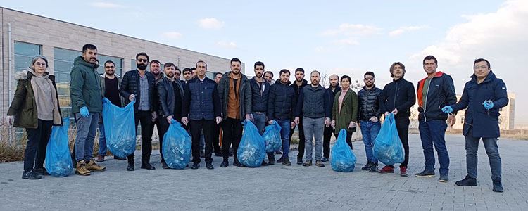 Rektör Yardımcısı ve UBF Dekanı Prof. Dr. Yaşar Karadağ’ın da katıldığı etkinlikte akademik personeller ve öğrenciler çevre temizliği etkinliği kapsamında UBF çevresi, kafeterya ve yemekhane güzergahında, Yeşil alan ve yol kenarlarında bulunan plastik, kağıt, cam ve izmaritler çöp poşetlerine dolduruldu.
