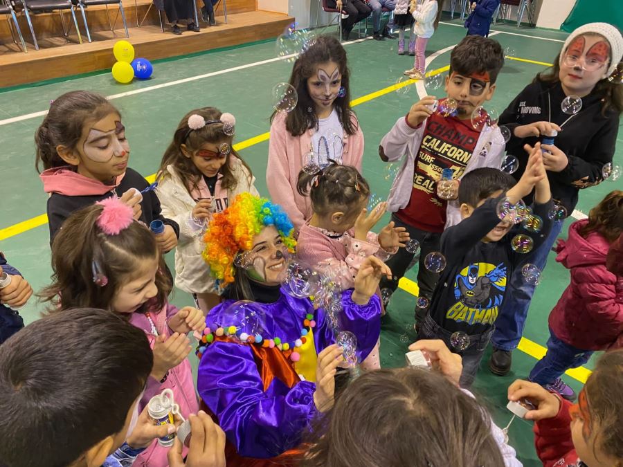 Gönüllüler, yüzlerini boyadıkları çocuklara hediyeler dağıttı, özel yapılan pastalardan ikram etti.