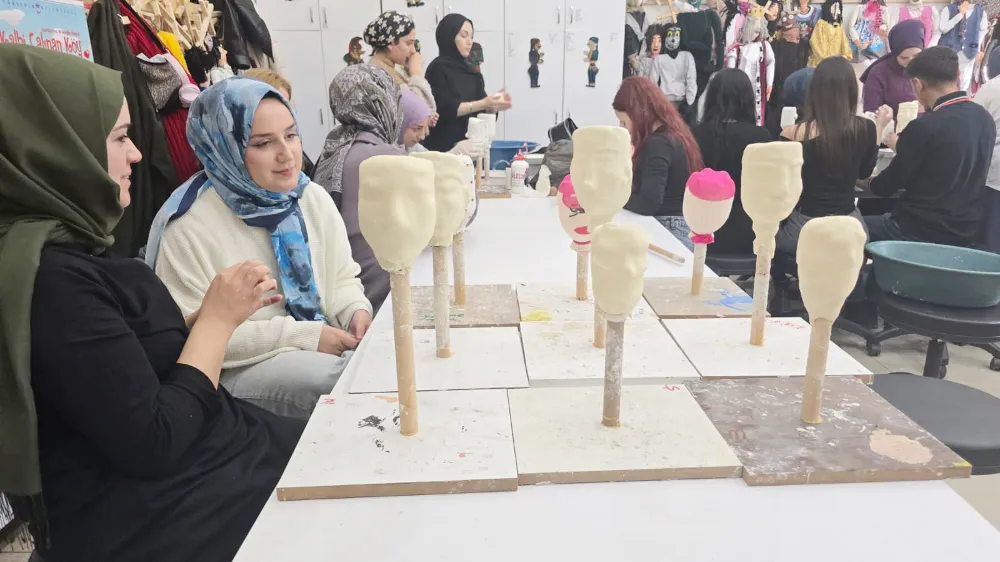 Üniversite bünyesinde kurulan Kukla ve Karagöz Yapım ve Oynatım Atölyesinde yürütülen çalışmalar kapsamında, öğrenciler günlük hayatta atık olarak görülen malzemeleri sanatsal ürünlere dönüştürüyor. Tuvalet kâğıdı, tutkal, bez parçaları ve ahşap gibi geri dönüşüm materyallerinden oluşturulan kuklalar, hem çevreye duyarlılığı teşvik ediyor hem de öğrencilerin el becerilerini geliştiriyor.