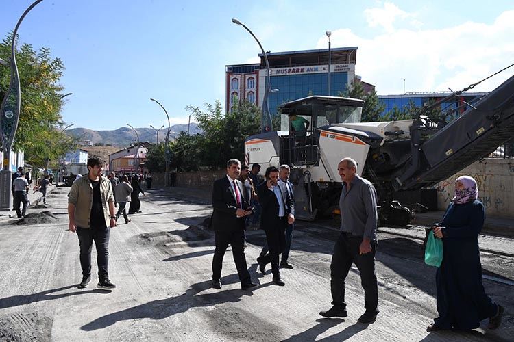 Muş Belediyesi tarafından başlatılan üst yapı çalışmaları kapsamında geçen yıl yapımı tamamlanan Cumhuriyet Caddesinde aşınma asfalt serimi için hazırlıklara başladı.