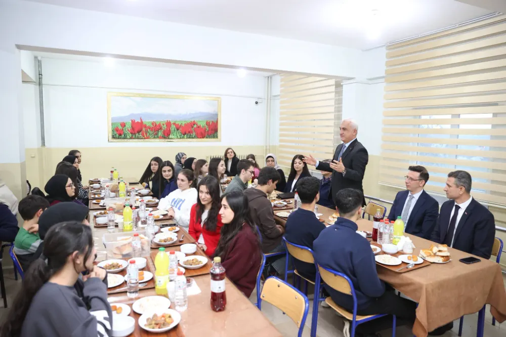 İftar öncesinde öğrencilerle sohbet eden Vali Çakır, onların eğitim hayatları ve günlük yaşamlarıyla ilgili taleplerini dinledi. Öğrencilerin sorularını yanıtlayan Vali, Ramazan ayının paylaşmayı, dayanışmayı ve toplumsal birlikteliği güçlendiren önemli bir dönem olduğunu vurguladı.